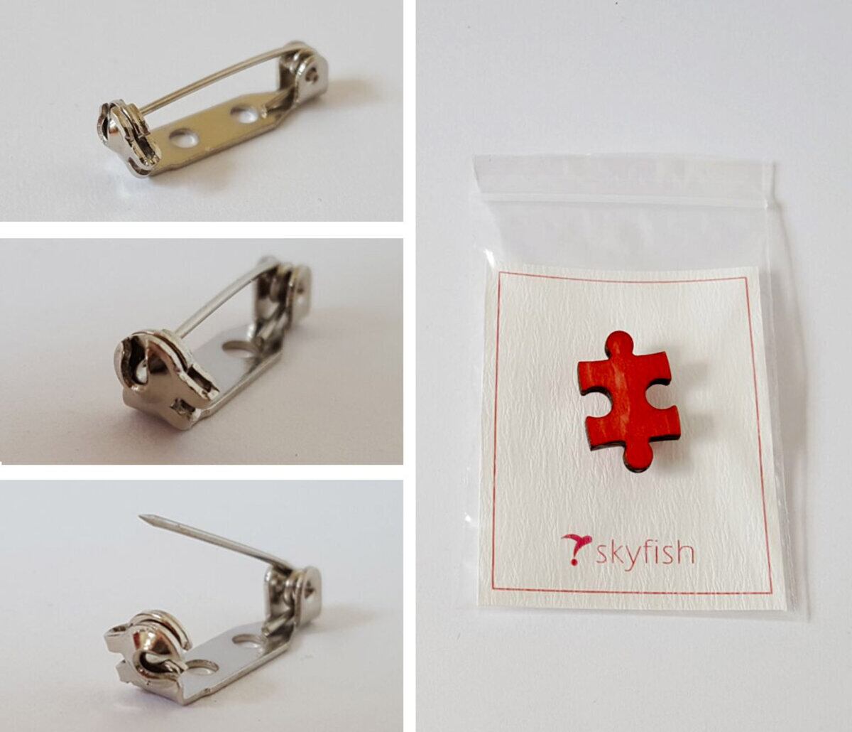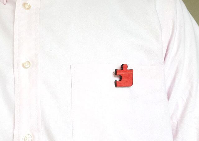 木製のジグソーパズルの形のブローチです。